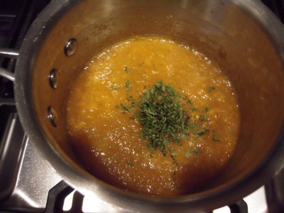 - Combine all of the sauce ingredients except the mint in a small saucepan. Heat and whisk on medium just to a boil, then reduce heat to maintain a simmer. Let it simmer, whisking occasionally, until it is very thick (think heavy maple syrup) and reduced to about 1/2 cup total volume (20~30 minutes). Turn your attention to the other steps while this is cooking.
