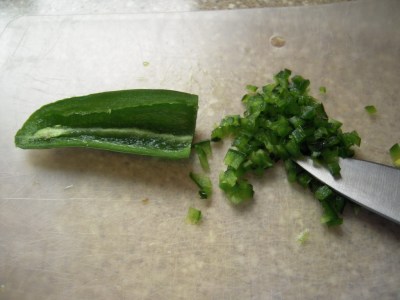 - Cut the jalapeño in half, remove the seeds and white membrane, and mince it in a similar fashion.