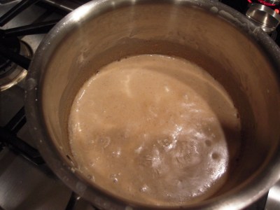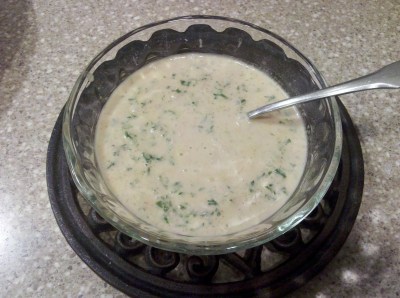 - Combine everything except the parsley in a small sauce pan. Whisk to combine, then bring to a simmer on low heat. Allow to simmer for 5 to 10 minutes, stirring/whisking every so often to keep things mixed and scraped off the sides of the pan.