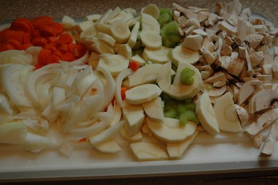 - 2 each of carrots, celery and parsnips, peeled and chopped