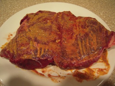 - Mix everything but the leftover coconut Dijon sauce in a small prep bowl to combine well. Spread evenly over both sides of the round steak, then let sit while the grill is reaching temperature. Work on your side dishes during this time.