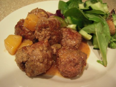 This one is great to throw together on a weekend around lunch time and leave cooking all afternoon for dinner. It is also a popular potluck dish, and makes plenty of servings for just such an occasion…or make it for yourself and have lots of extra for lunches. Best of all, you can adjust the both the meatballs and the sauce with other “Asian” ingredients to increase the variety of this meal just about any way you want.