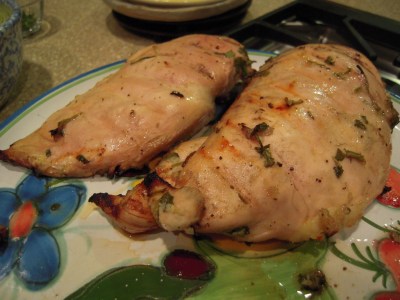 Combine all of the marinade ingredients in a bowl and whisk to combine well (you can halve the marinade ingredients if you are doing less chicken). Place the chicken breasts in a gallon freezer bag. Pour in the marinade and mix to coat everything well. Press out as much air as possible and seal, then place in the refrigerator to marinade for half hour.