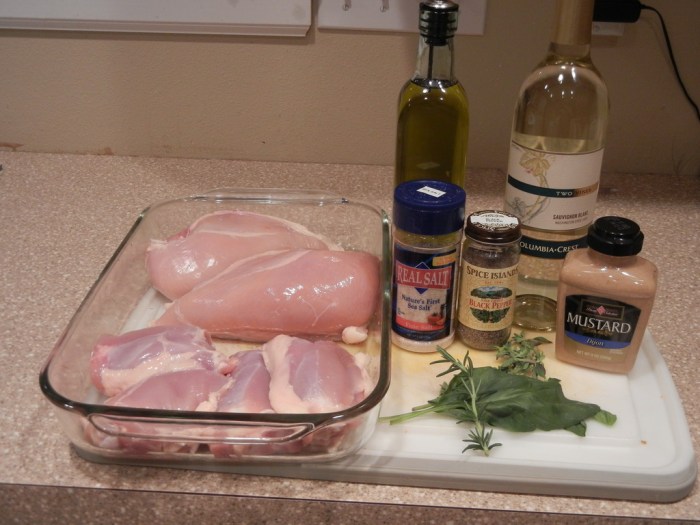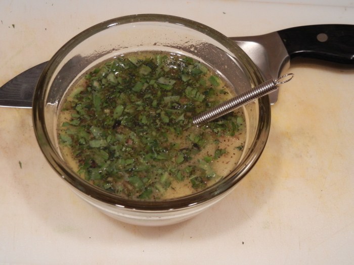 Mince all of the fresh herbs, then combine everything (except the chicken, of course) in a medium prep bowl. Whisk to mix everything well.