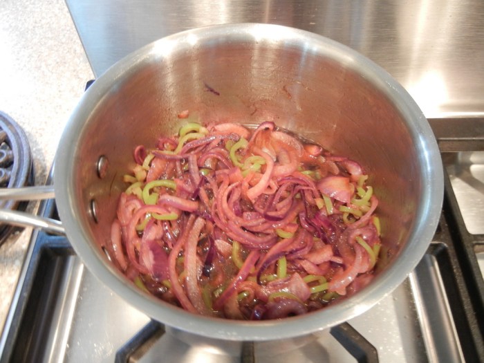 Serve with some of the jellied onions on top, and some additional on the side. This one goes well with yesterday’s Orange Hazelnut Salad too. Dig in!