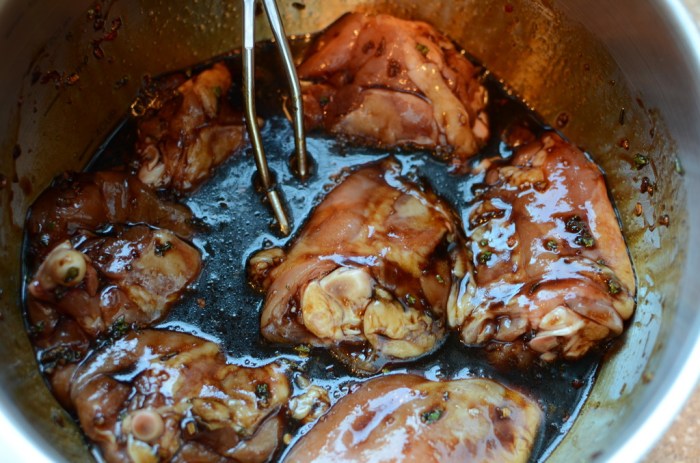 - 16 to 20 chicken thighs, bone-in and skin removed (I only used 8 here, but there is enough sauce for more than twice that many).