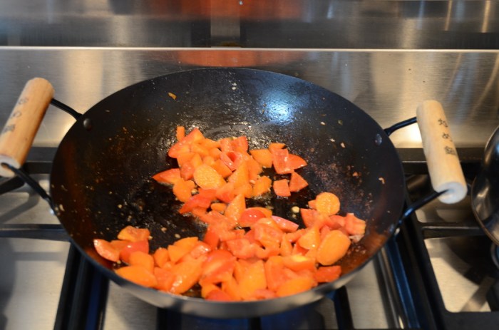 - Continue with the carrots and bell pepper until they are crisp-tender. Add a little more oil if needed, and stir often while keeping the heat fairly hot.