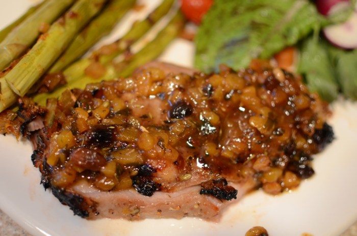 This recipe came to us from the newsletter of a retreat center Karen has attended in the past, only originally written for chicken breasts and with a much sweeter sauce. So I set to work making some adjustments to suit our own less-sweet-loving palates, and to convert it over to work with a boneless butt pork roast we had in the freezer. The results were downright incredible.