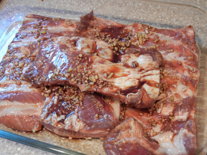 Combine the garlic, two tablespoons of the ginger, and the coconut aminos in a prep bowl. Place the ribs in a glass baking dish and pour the mixture over the top. Turn the ribs to coat well, then cover and refrigerate for at least 2 hours (overnight works too).