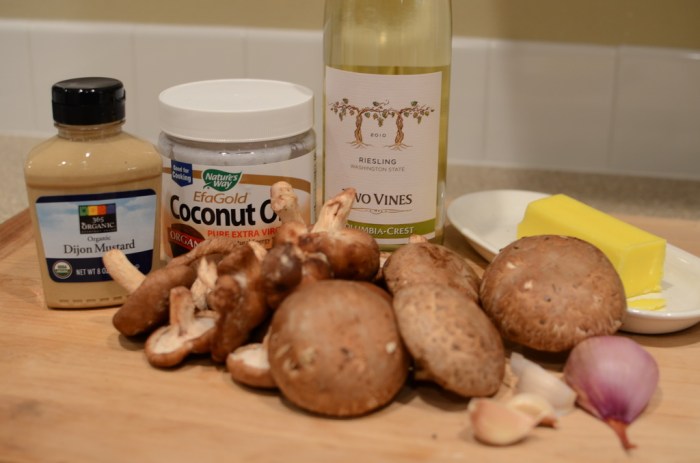 Get everything sliced and minced up. You can mix all the mushrooms in a prep bowl, and combine the shallots and garlic in a small prep bowl. Whisk the Dijon and wine together in a separate bowl. If you are having these with steaks, get the steaks on the grill just before you proceed with everything else below.
