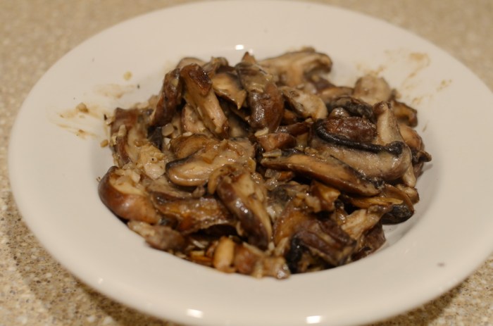 Dijon mustard has a unique blend of mustard and spice that is great for a lot of sauces, marinades, and rubs (just check out the tag cloud at the left of this post and click on the word “dijon”). So, when looking for a side dish to accompany our Dijon Grilled Round Steak the other night, I thought it would be a good chance to try combining some of the mustard with sauteed mushrooms. But rather than stop there, I mixed things up a bit more by combining shiitake with our regular mushrooms, and adding in minced garlic and shallots.