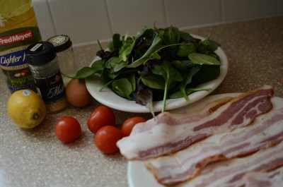 - Bacon cut into bits. Amount depends on how much you would like for each salad. I had about 3 strips per salad I was making. You can also add extra protein such as chicken if you wish.