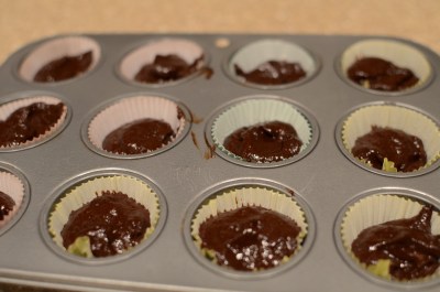 - Pour into muffin pan. It will make 12 large or 36+ mini cupcakes.