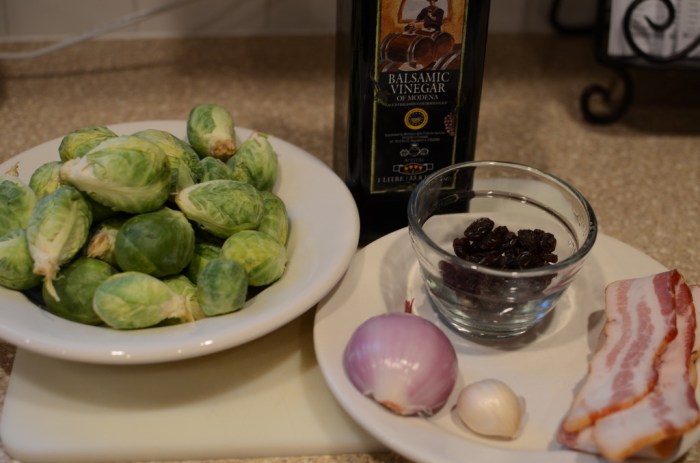 Mmm raisins and brussels sprouts. I imagine tis is good!:)