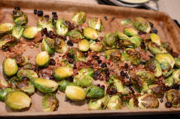 I think I’d have to omit the raisins but this sounds really good. I love garlic & Brussels Sprouts already.