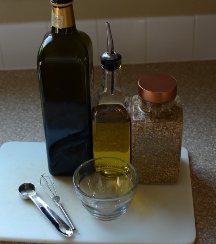 Here is a great dressing that we’ve been using on salads lately. We just mix up a quick batch right before dinner is ready, and it’s just enough for a couple of side salads.