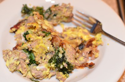 I made this the night before we were going to eat it. Being a lazy cook I browned the bacon and shallot, browned the beef in the same pan. Once they were done I put them in a mixing bowl and cooked the remaining ingredients except eggs in the drippings. When they were done everything, including eggs got mixed together and put into the baking pan.