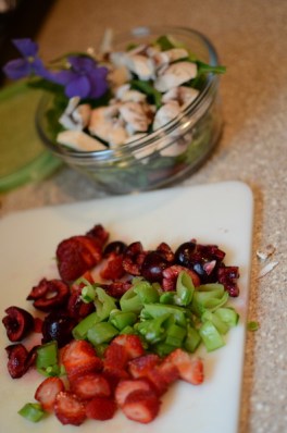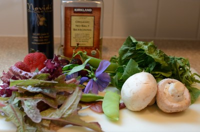 - Some greens for your salad. I used the tasty lettuce, snow peas, flowers, etc from my salad basket
