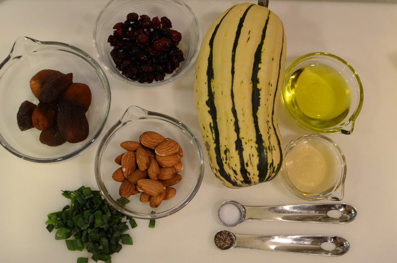 - Add in squash and mix together. Then add in cranberries and apricots. Sprinkle with almonds.