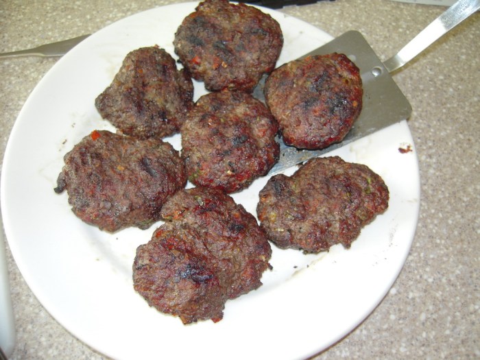Onion Pepper Burgers Author: Purely Primal Prep time: 10 mins Cook time: 10 mins Total time: 20 mins Serves: 5 Ingredients 1-1/2 lbs of grass-fed free-range beef 2 scallions or green onions (you could use 1/3 of a yellow onion instead) 1/2 red bell pepper 1~2 mushrooms 1 clove garlic 1~2 tbsp Worcestershire sauce … Continue reading Onion Pepper Burgers