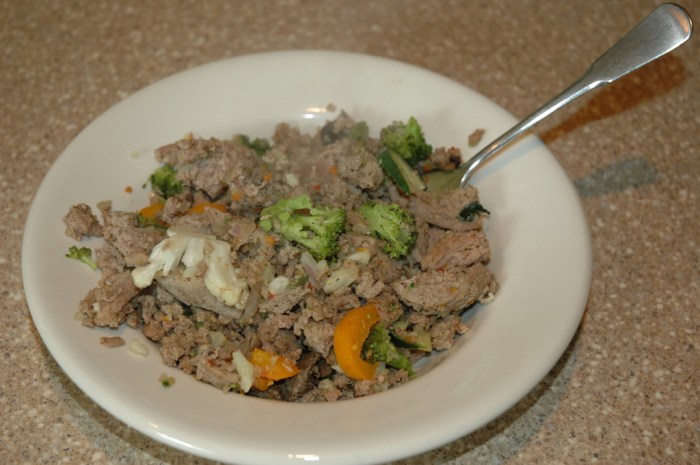 Turkey-Veggie Breakfast Author: Purely Primal Prep time: 5 mins Cook time: 10 mins Total time: 15 mins Serves: 4 Ingredients 1 to 1-1/2 pounds of ground turkey (beef, sausage, or chicken works too) 1 tbsp coconut oil 1 tbsp or so of Kirkland Organic No-Salt Spice Blend (or any other spices/herbs you wish to include- … Continue reading Turkey-Veggie Breakfast