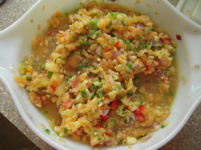 We've done a few similar recipes on this site already, including the melon pineapple salsa, the mango salsa, and even the recent pork chops with warmed mango chutney. Where this one departs from the first two is the exclusion of any hot chiles (and obviously no pineapple or melon either). The differences with the latter … Continue reading Fresh Mango Chutney