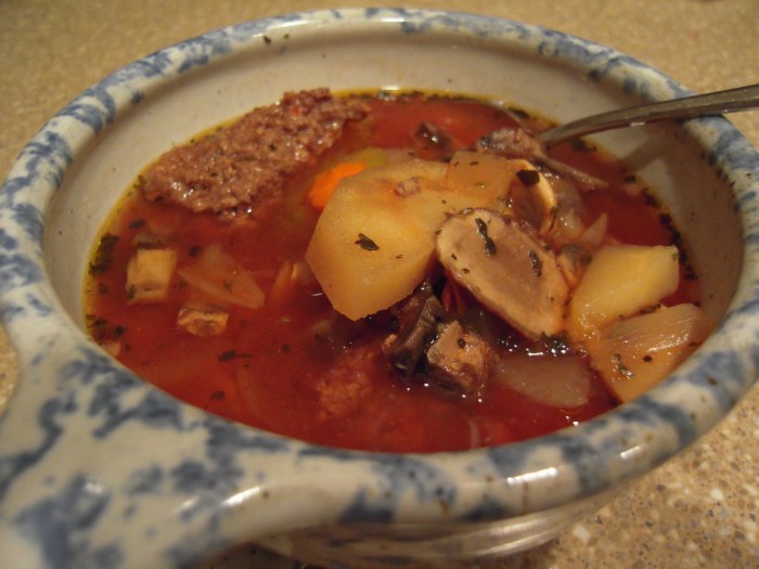 Paleo Dump Soup Recipe Type: Main Dish Author: Purely Primal Prep time: 20 mins Cook time: 4 hours Total time: 4 hours 20 mins Serves: 6 Ingredients 1-1/2 to 2 pounds elk burger (or meat of your choice, preferably grassfed of course) 1 tablespoon coconut oil (not pictured here) 3 quarts of water 1/2 pound … Continue reading Paleo Dump Soup
