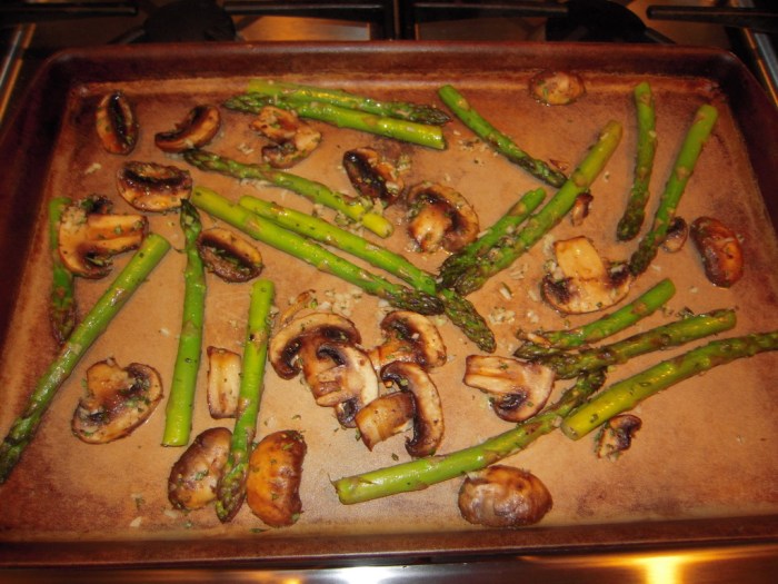 Garlic-Roasted Asparagus & Mushrooms Recipe Type: Side Dishes Author: Purely Primal Prep time: 15 mins Cook time: 10 mins Total time: 25 mins Serves: 5 Ingredients One bunch fresh asparagus – look for firm fresh stalks that are not very stringy/woody on the ends 5 to 8 white mushrooms, sliced into 4 thick slices each … Continue reading Garlic-Roasted Asparagus & Mushrooms